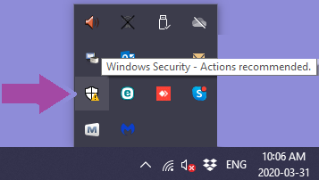 If there is a yellow exclamation on the Windows Security shield icon, right-click on it to open the Windows Security Center